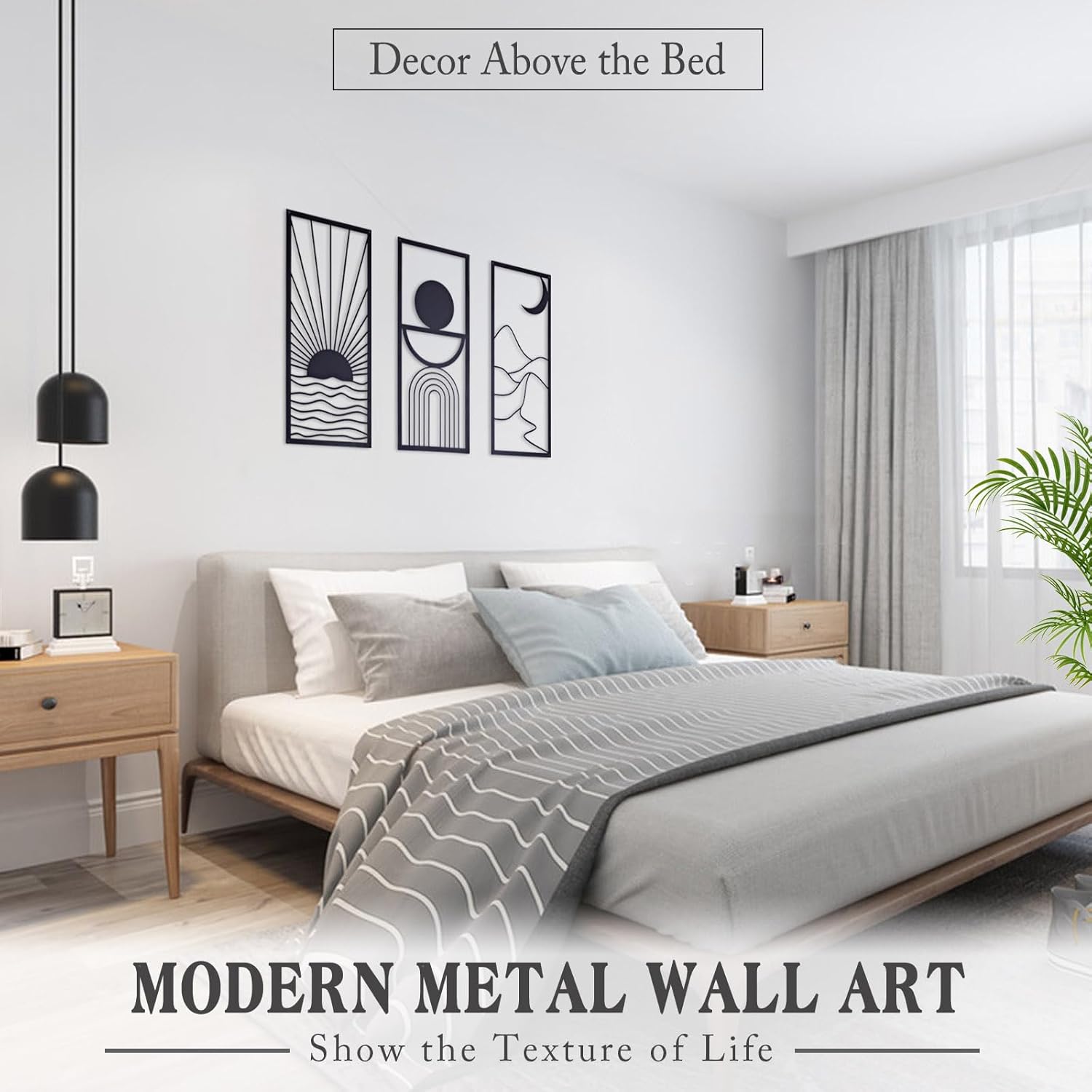 Add a bold statement to your space with our 3-Piece Black Metal Wall Art. Featuring minimalist boho-inspired designs, these large modern abstract pieces bring an artistic and sophisticated touch to your living room or bedroom. Crafted from durable black metal, this set offers timeless elegance and a contemporary vibe that complements any decor style.